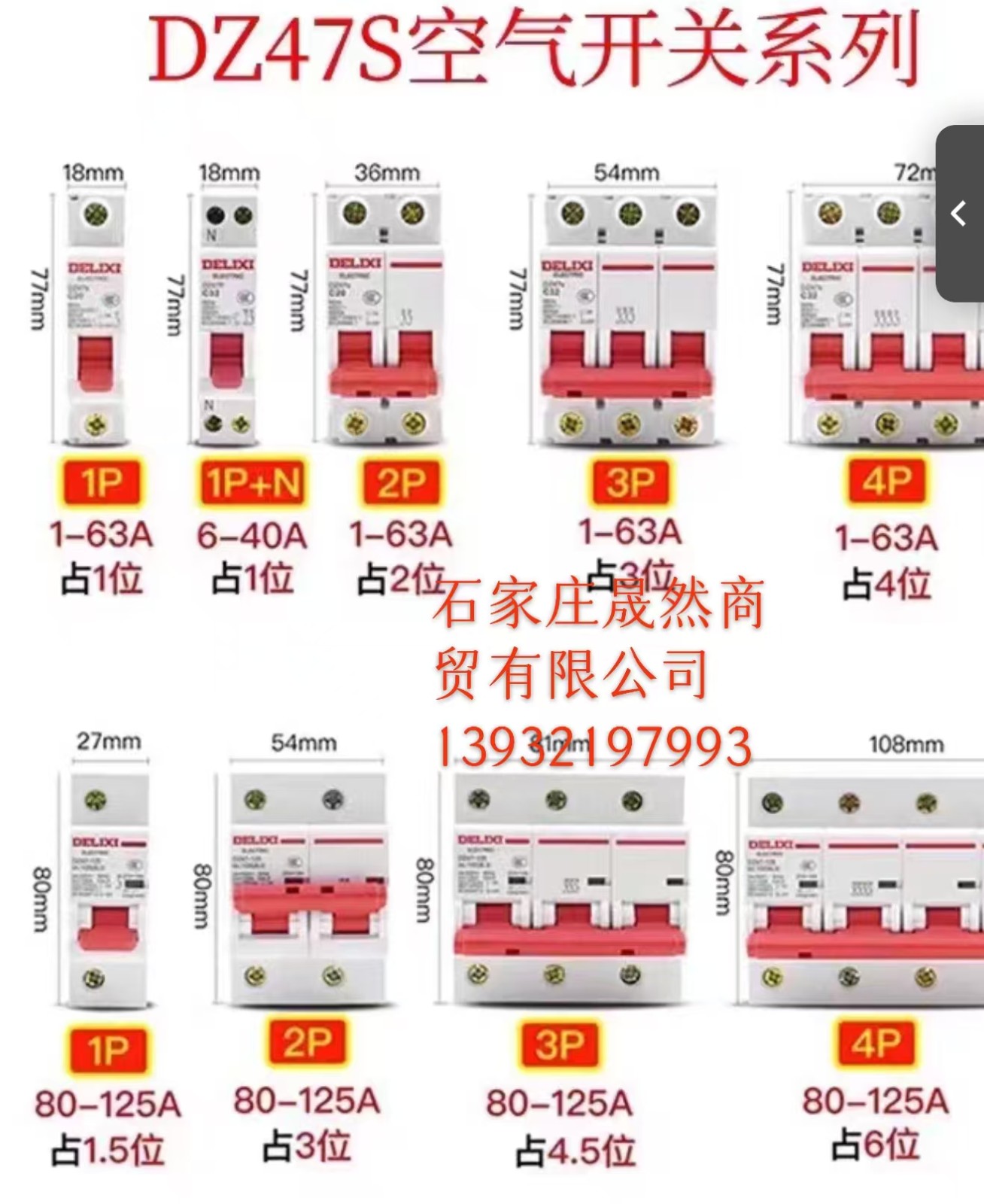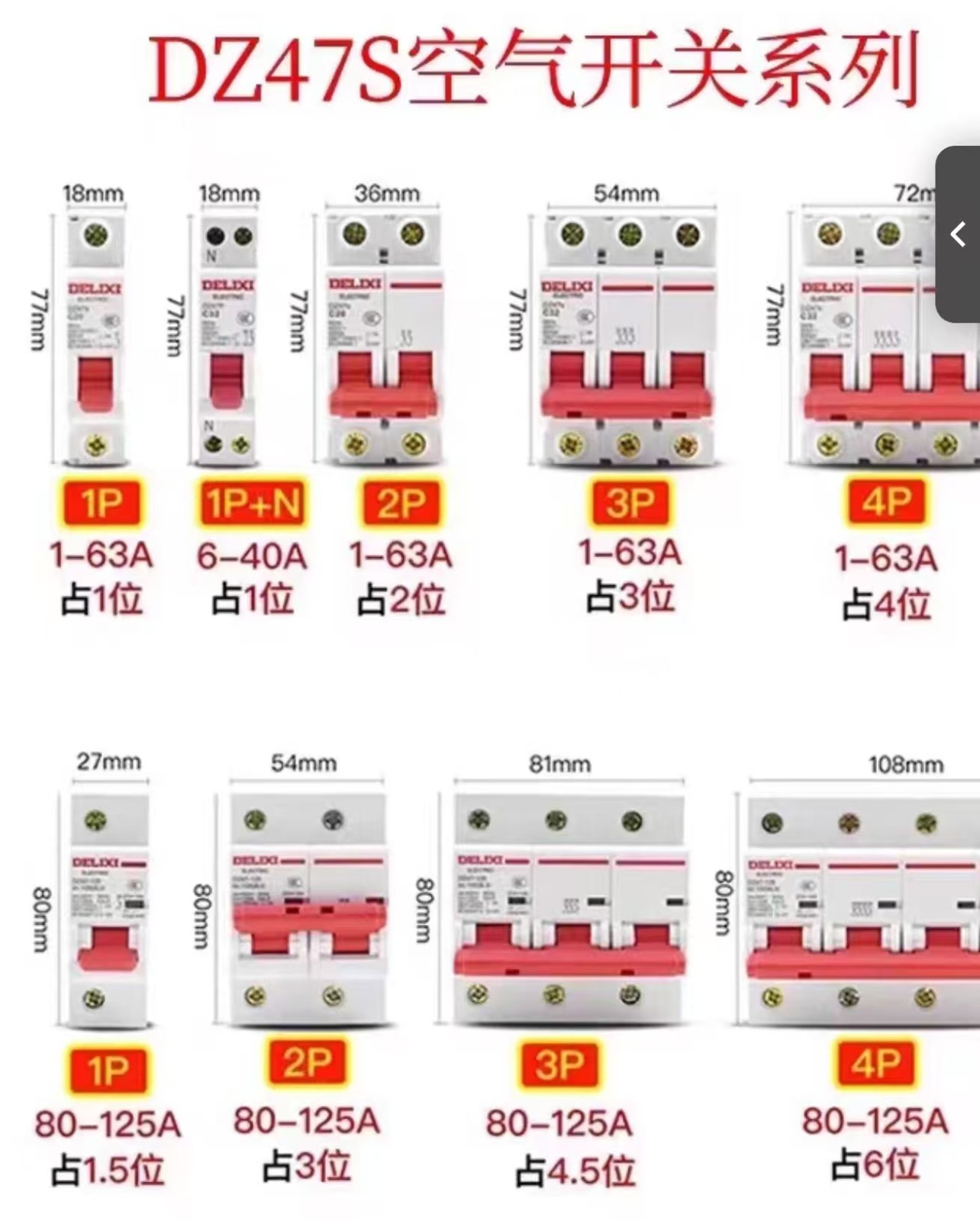 德力西空開2P 40A 6個(gè)/盒